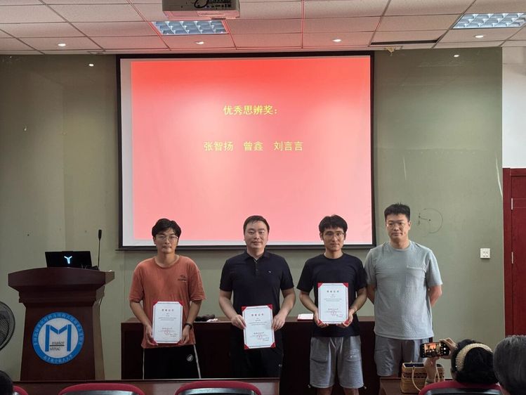倪长也老师为获奖同学颁奖时强调,积极思辨是学术创新的重要动力,希望全体同学以此为契机,深化组会研讨成效。
