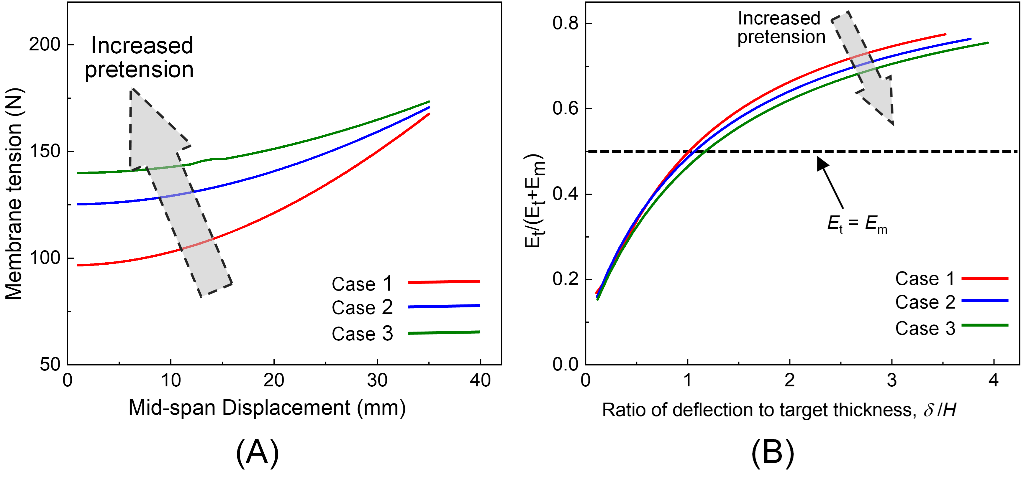 图3 (A) 预拉伸对金属结构膜拉伸性能的影响,(B) 膜拉伸在整体结构变形吸能中的贡献